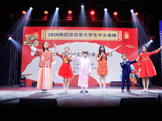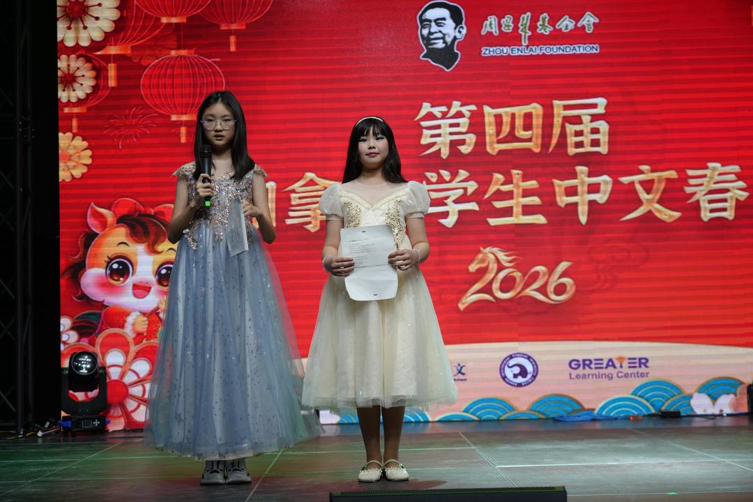 2026年2月8日,由周恩来基金会主办,双快中文、更优教育和加拿大小象传媒共同协办的“2026第四届加拿大学生中文春晚”在新动力传媒演播厅隆重举行。晚会以学生为主体、以中文为载体,汇聚40余位嘉宾政要及社会贤达到场祝贺,吸引家长、学生及社区观众400余人现场参与。