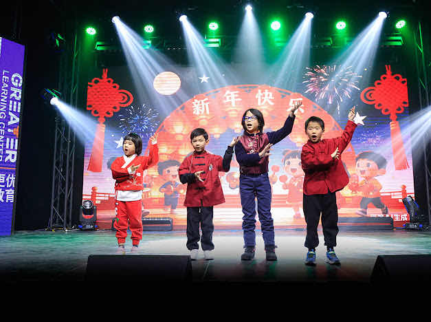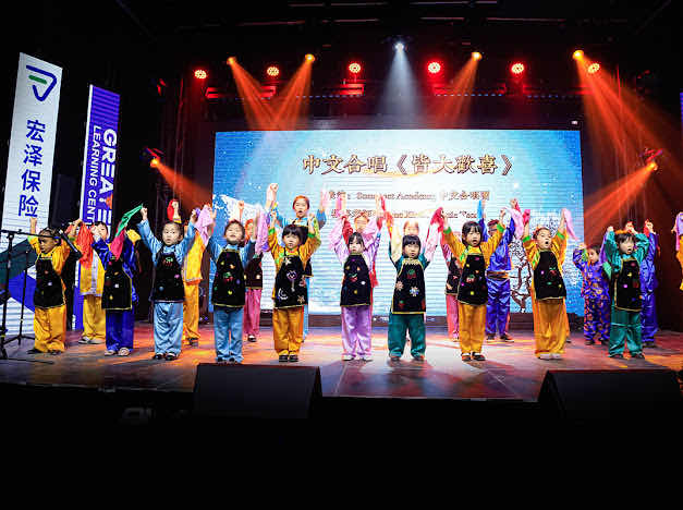 亲子儿童剧《亲子大话西游》以陪伴呈现学习现场;《把未来点亮》歌声真挚;舞蹈《玉瓷旋香》清雅灵动;儿歌串烧《新年到》童声报喜;三句半《快乐学中文》机智幽默、笑中见学;Somerset Academy 合唱《卖汤圆》《皆大欢喜》团圆喜庆,把现场气氛推向高潮。