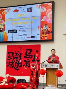 奥克维尔市长 Rob Burton亲临现场并致辞,与市议会成员一同向社区送上诚挚的新春祝福。联邦国会议员Sima Acan,以及代表外交部长Anita Anand的 Elizabeth Chalmers,安省公共和商业服务及采购厅厅长、Oakville省议员 Stephen Crawford,