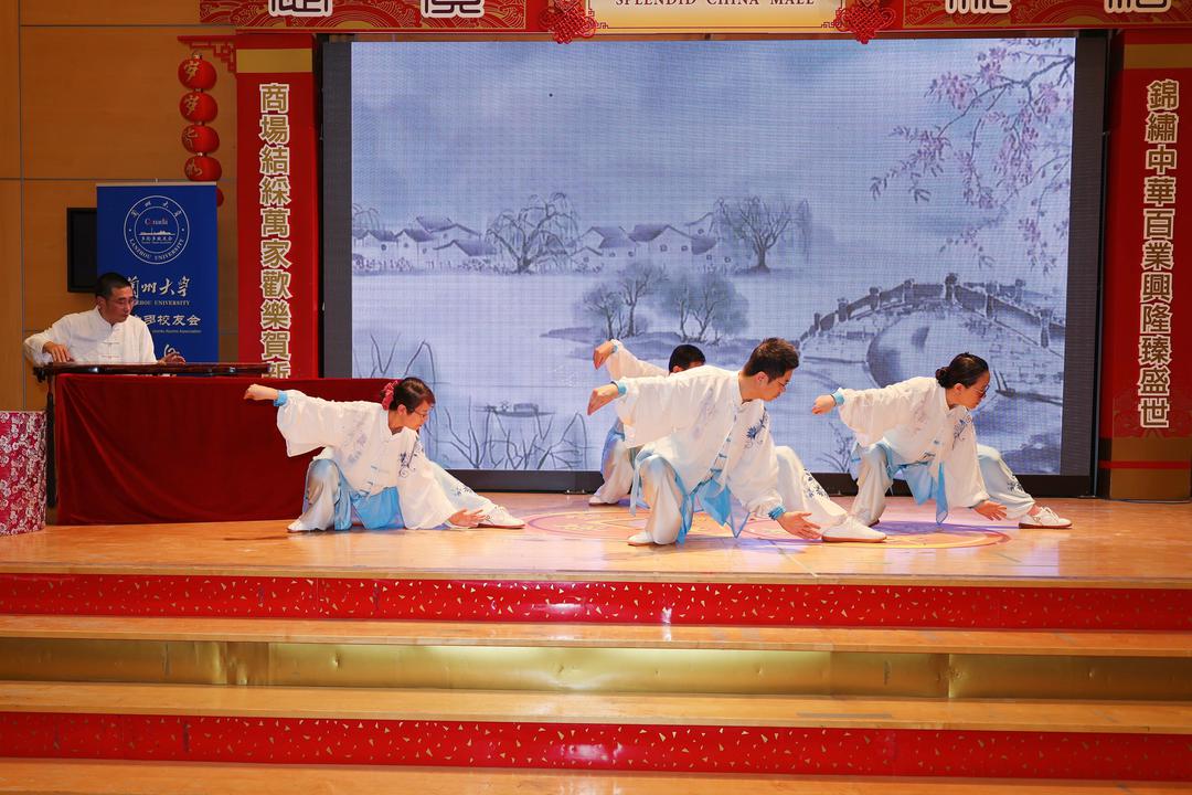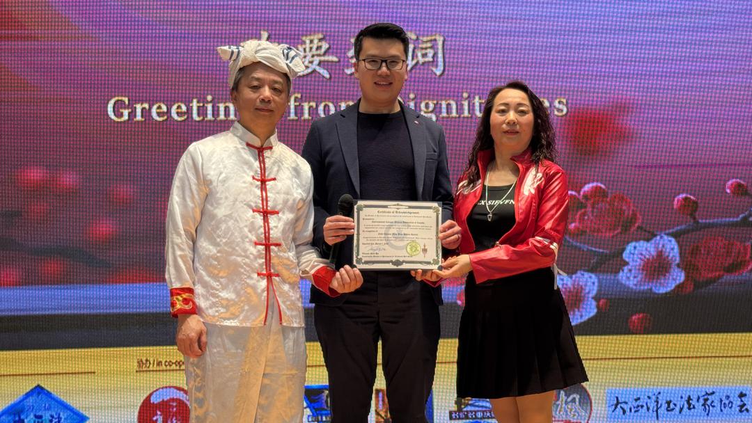 书法表演环节,大西洋书法家协会芮家庆现场挥毫,笔走龙蛇,写下“无人扶我青云志,我自踏云至山巅”的名句,墨香四溢,赢得满堂喝彩。古琴演奏家文尧与Talent太极社联袂呈现《云水禅心》,古琴悠远,太极刚柔并济,将中国传统文化的意境美推向极致。