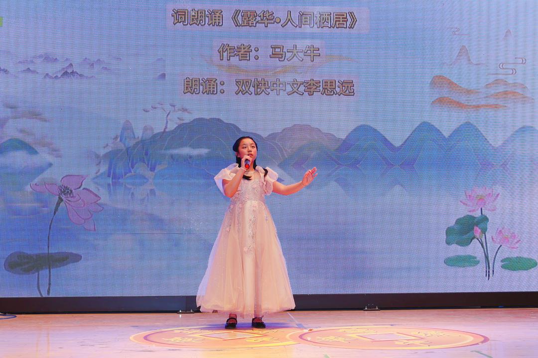 值得一提的是,本届晚会特别设置了多个童声朗诵节目。【双快中文】、【玉华中文】两所中文学校的孩子们用清澈纯真的声音演绎《诗意人生》、《人间诗意》等作品,展现了海外华裔下一代对中华文化的热爱与传承,现场掌声不断。