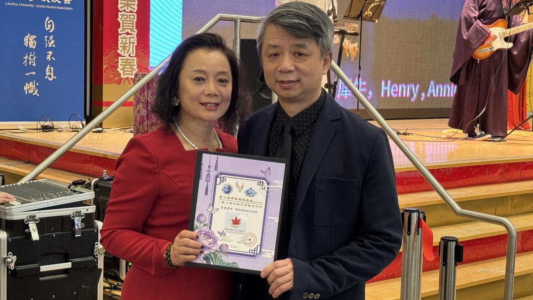 【加拿大国际华人作家协会】理事长与本次华语诗歌总统筹程炯女士,与【加拿大国际华人作家协会】会长、晚会总策划、总导演,著名中英双语诗人彧蛇先生共同登台致辞。程炯女士对所有协办单位、赞助商和义工团队的辛勤付出表示衷心感谢。”没有本次协办单位,赞助商,表演团队和义工团队的大力支持,我们的诗歌春晚不会如此精彩的呈现给每一位热爱诗歌和艺术的观众”。彧蛇则回顾了华语诗歌春晚从北京主会场走向北美、连续三年在多伦多绽放的历程:“十年是一个里程碑,更是新的起点。从第八届的初次探索,到第九届的深化创新,再到今天的第十届,我们见证了华语诗歌在北美的生根发芽。感谢每一位支持者的信任与陪伴,是你们让诗歌的种子在异国他乡开出绚烂的花朵。”